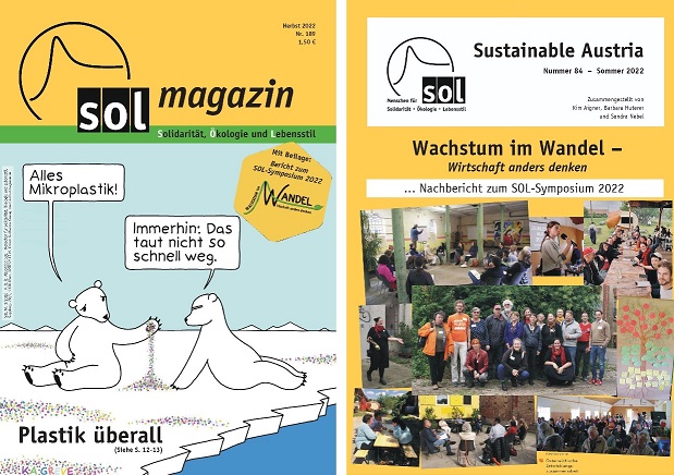 Im neuen SOL-Magazin Nr. 189 findet ihr wieder jede Menge spannender Artikel. Außerdem gibts als Beilage den Nachbericht zum SOL-Symposium 2022! Inhalt Magazin: SOL-Telegramm | Auf der Straße ist was LOS | 20 Jahre Bauerngolf | Österreich - Ukraine: 1zu1 | Bedingungslos freie Grundnahrungsmittel | Zu den aktuellen Ereignissen | Umweltgefahren von Plastik | Holunderbeeren | Kinderseite | SOLis am Wort