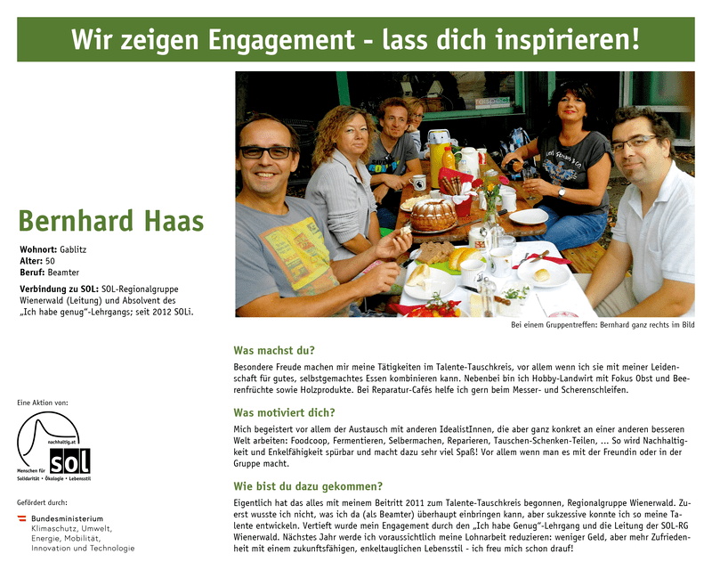 Diesmal: Gemeinsam für einen nachhaltigen Lebensstil im Wienerwald! Bernhard Haas, Leiter der Wandelgruppe Wienerwald.